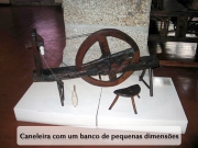 Caneleira com um banco de pequenas dimensões, provavelmente utilizada por crianças que enchiam as canelas para as lançadeiras do tear.